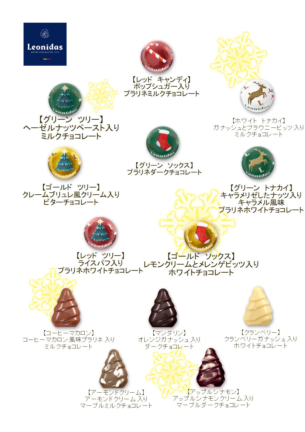 クリスマス限定のツリープラリネやフェスティブボールチョコレート、